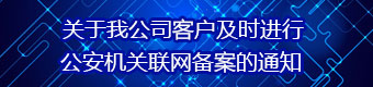 關于我公司客戶及時進行公安機關聯網備案的通知 根據國家公安部《互聯網信息服務單位網絡安全責任告知書》鏈接地址:http://www.beian.gov.cn/portal/topicDetail?id=47的指示及我市公安局開會傳達的精神,凡是網站開辦者都需要在全國公安機關互聯網安全管理平臺進行聯網備案,根據《計算機信息網絡國際聯網安全保護管理辦法》(公安部令第33號)的 第二十三條規定“ 違反本辦法第十一條、第十二條規定,不履行備案職責的,由公安機關給予警告或者停機整頓不超過六個月的處罰。”